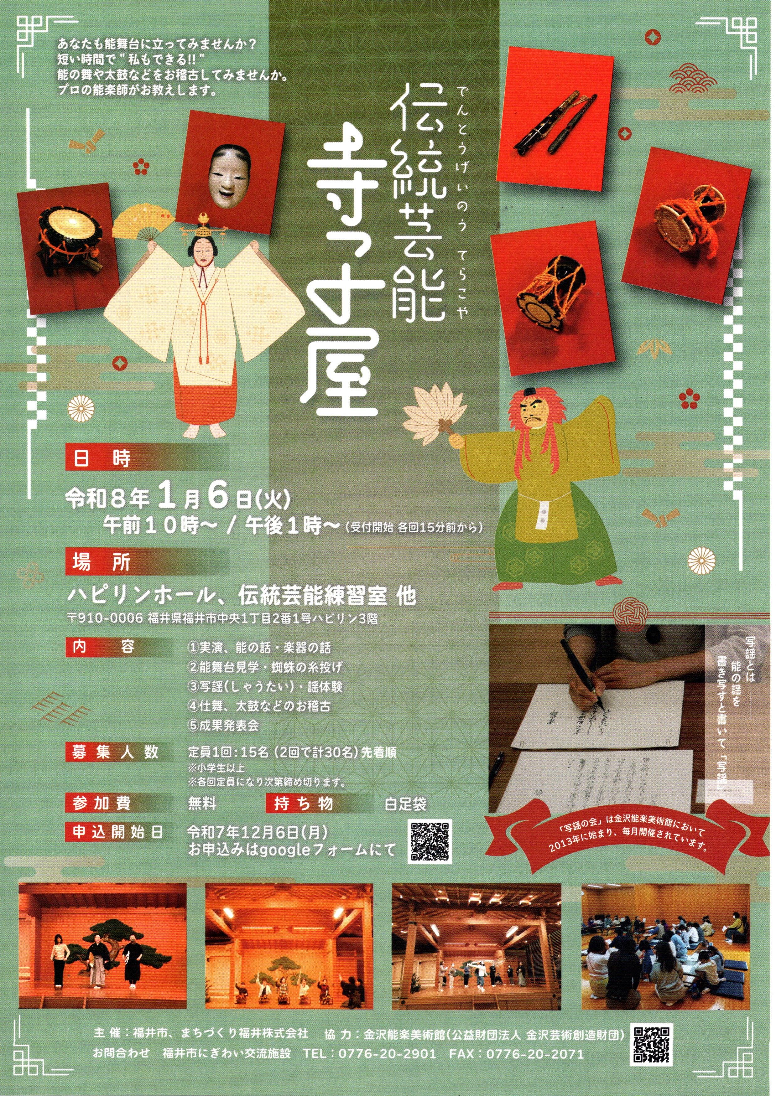 ところ:ハピリンホール(ハピリン3階) ※能舞台と3階諸室