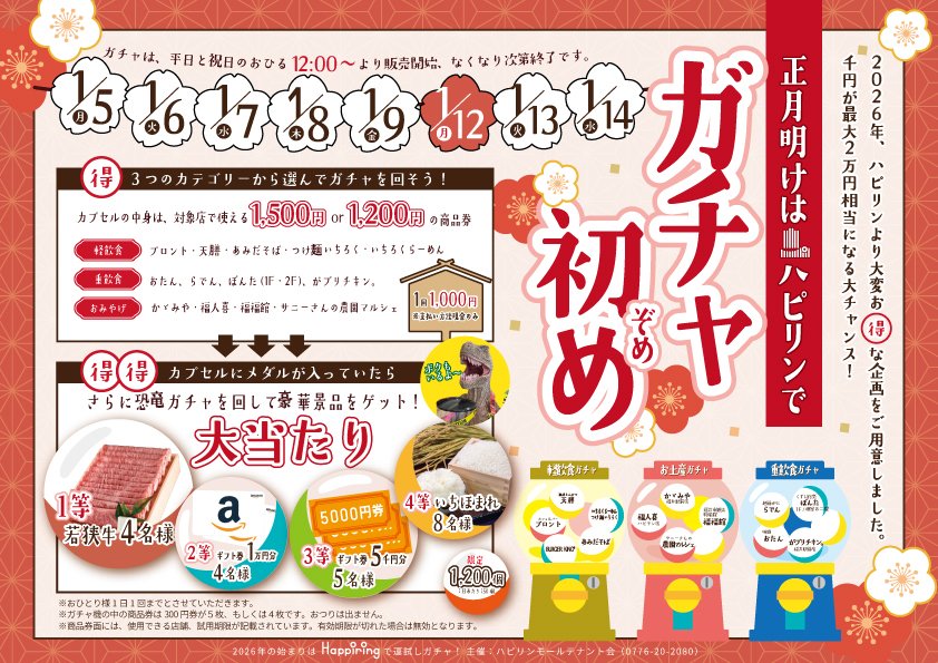 2026/1/5(月)、6(火)、7(水)、8(木)、9(金)、12(月)、13(火)、14(水)『正月明けはハピリンでガチャ初め』
