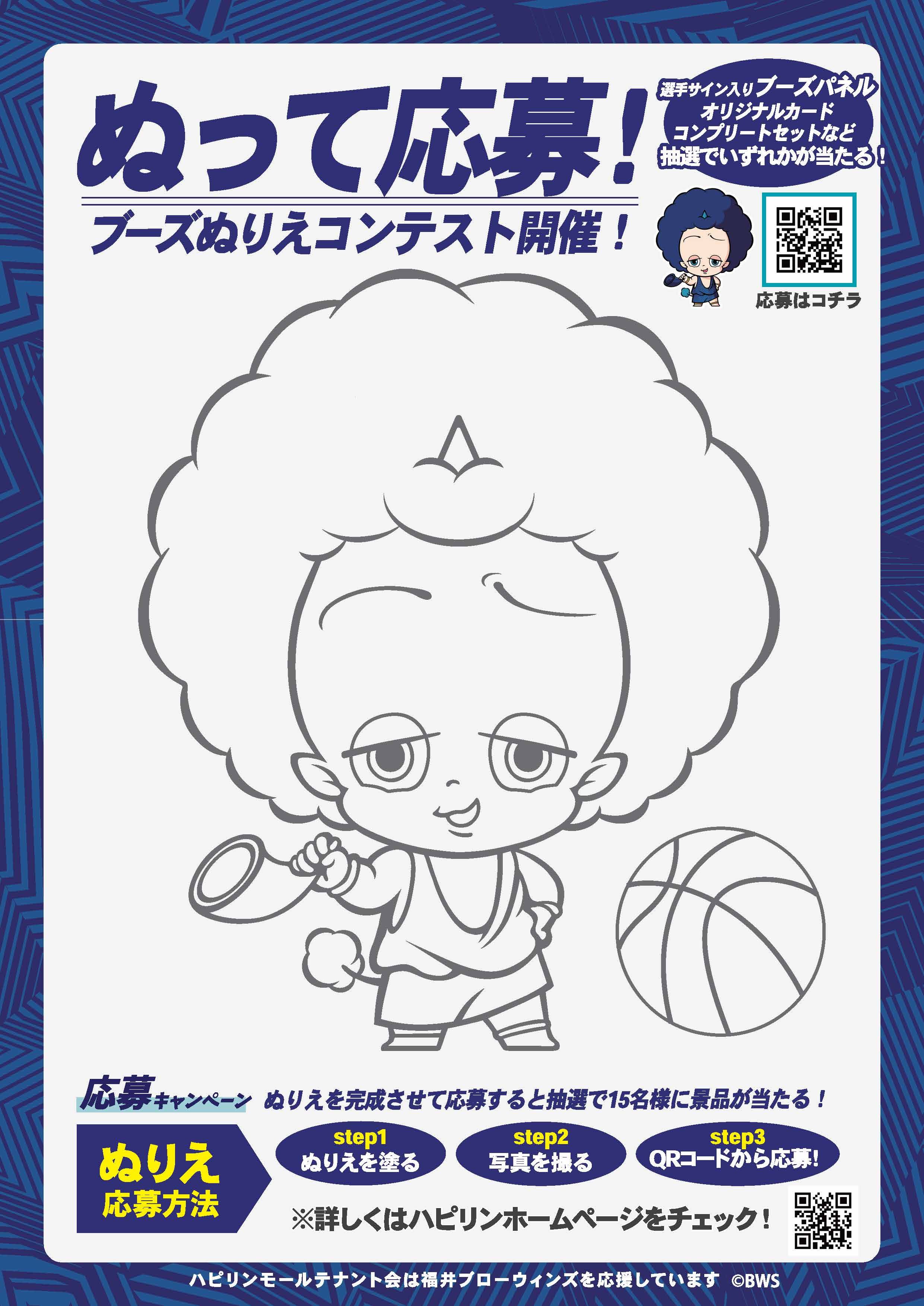 1/16(金)~2/15(日)『福井ブローウィンズ×ハピリンコラボ”ぬって応募!ブーズぬりえコンテスト”』