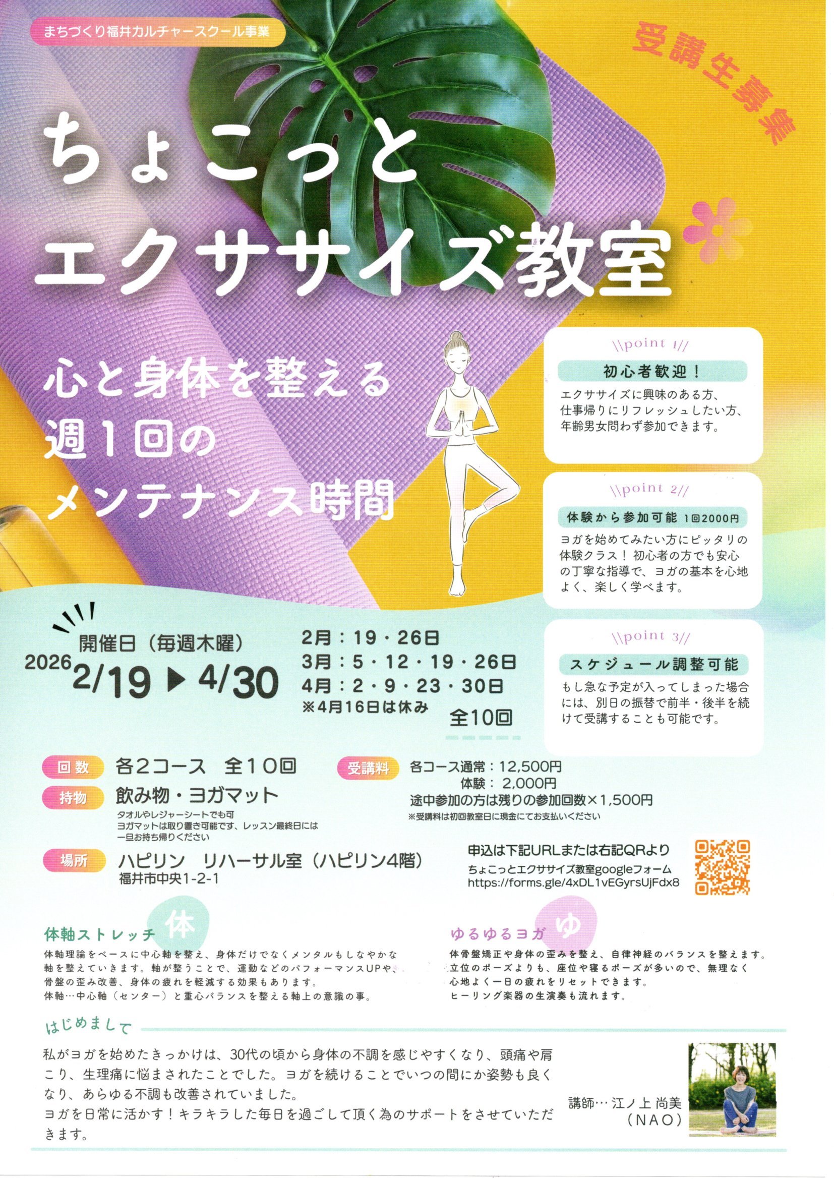 2026/2/19(木)~2026/4/30(木)『ちょこっとエクササイズ教室』