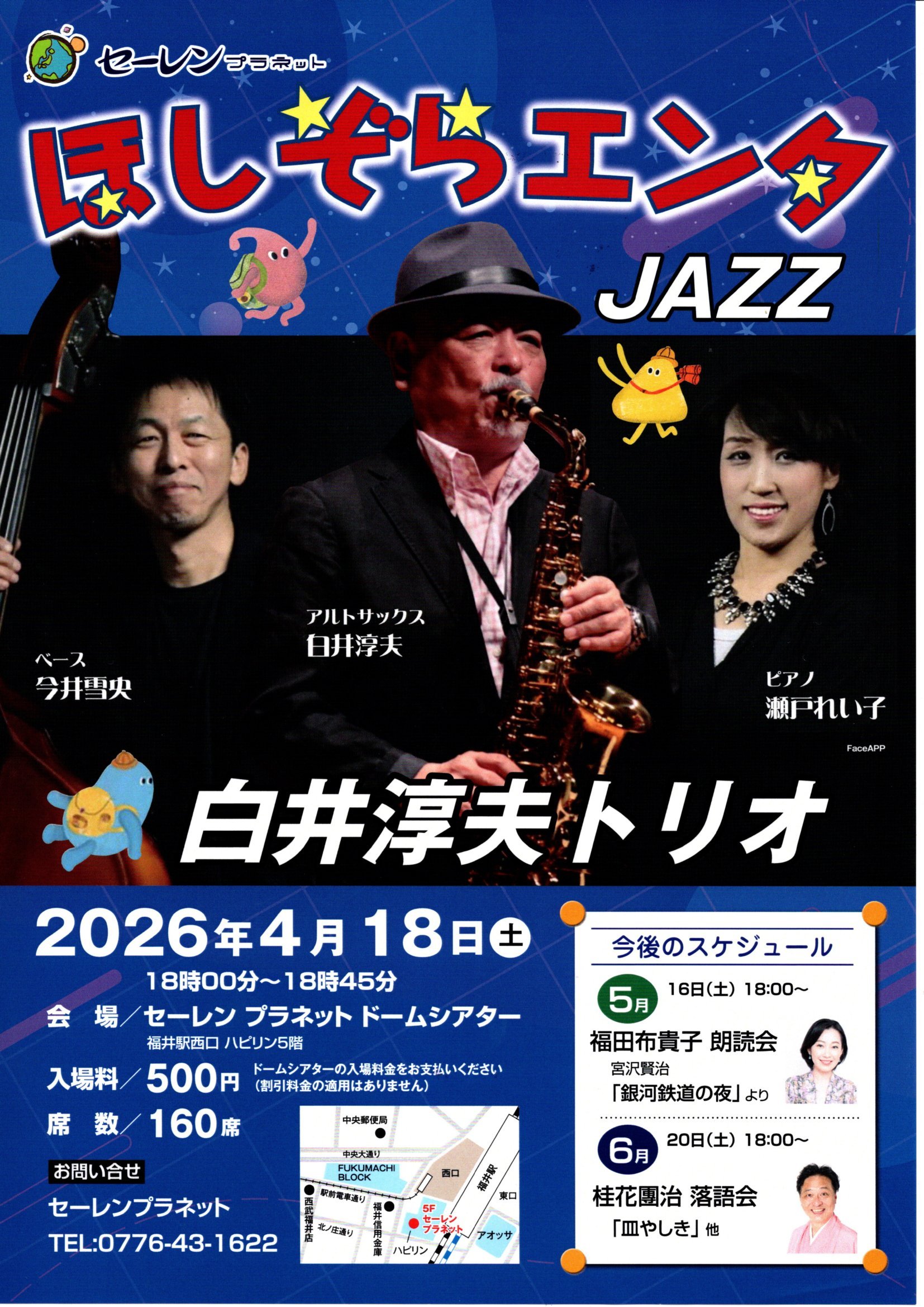 2026/4/18(土)『ほしぞらエンタJAZZ白井淳夫トリオ』