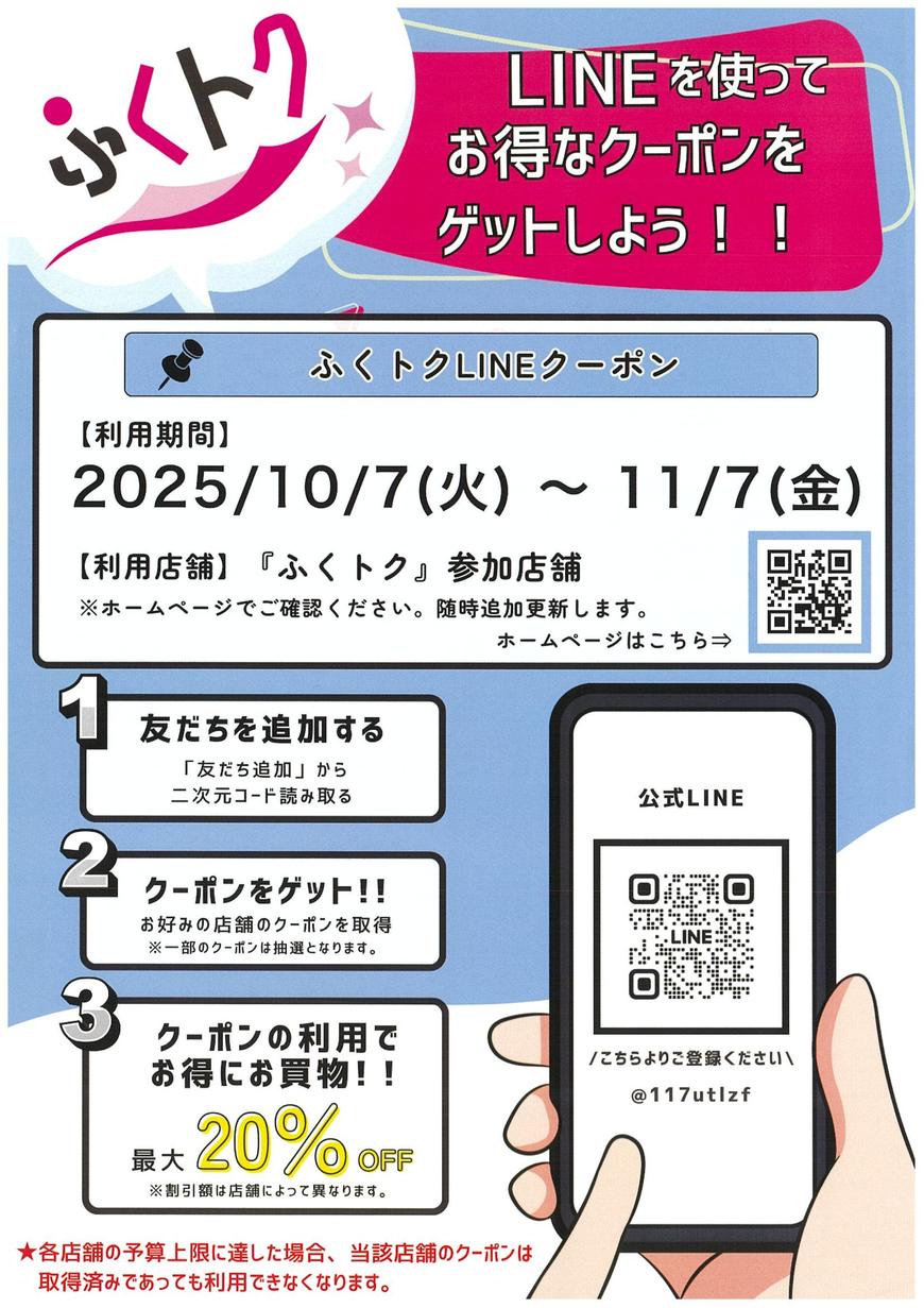 2025/10/7(火)~11/7(金)『ふくトク LINEを使ってお得なクーポンをゲットしよう!』