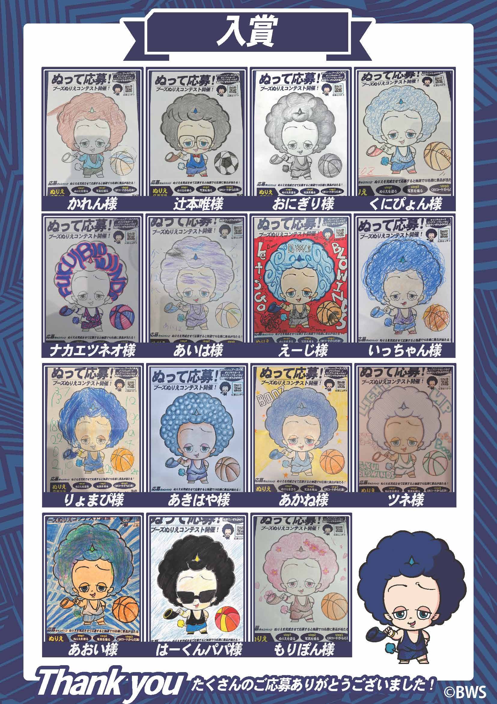 『福井ブローウィンズ×ハピリンコラボ ぬって応募!ブーズぬりえコンテスト結果発表』