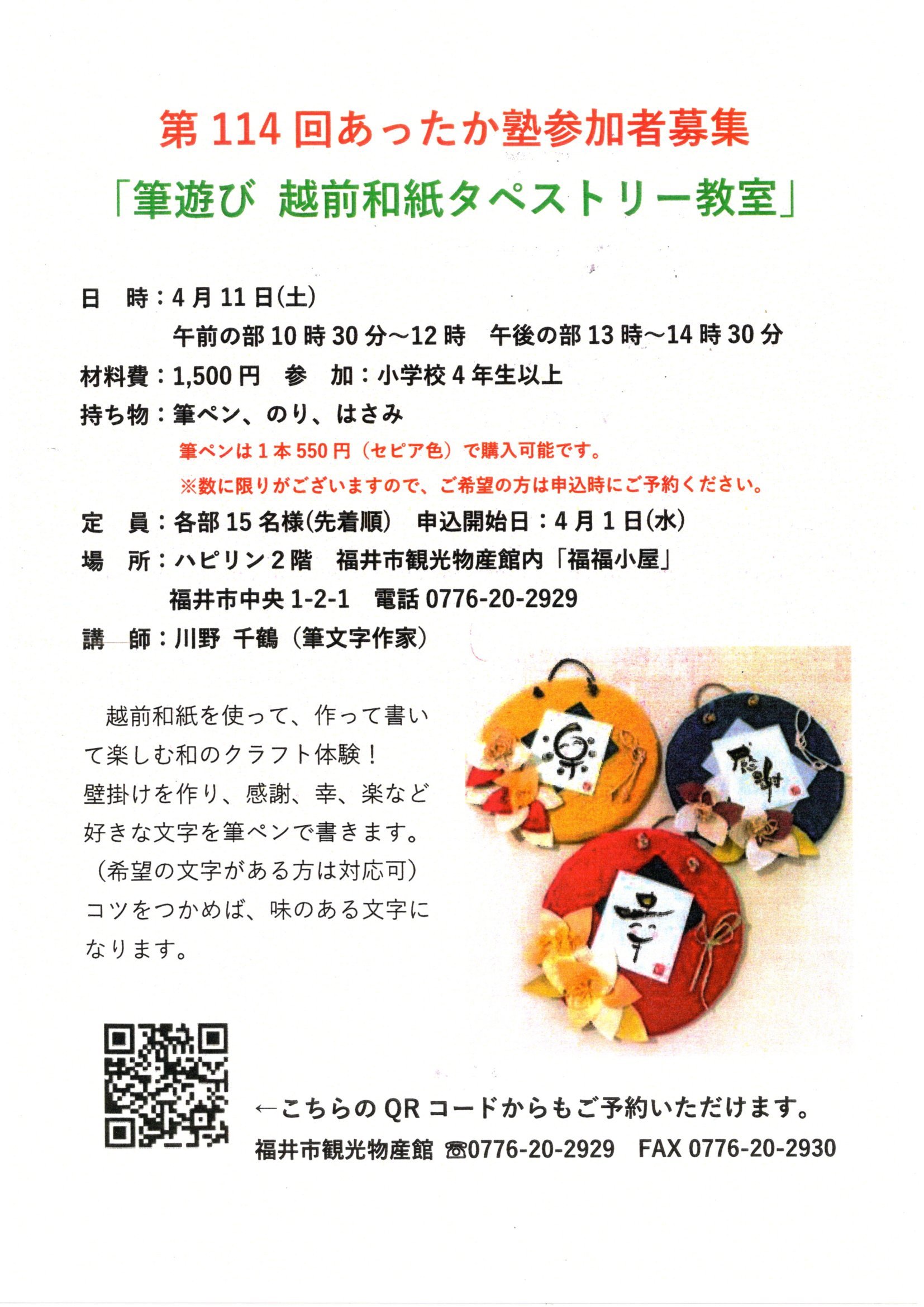 福井市観光物産館 ☎:0776‐20‐2929 FAX:0776‐20‐2930