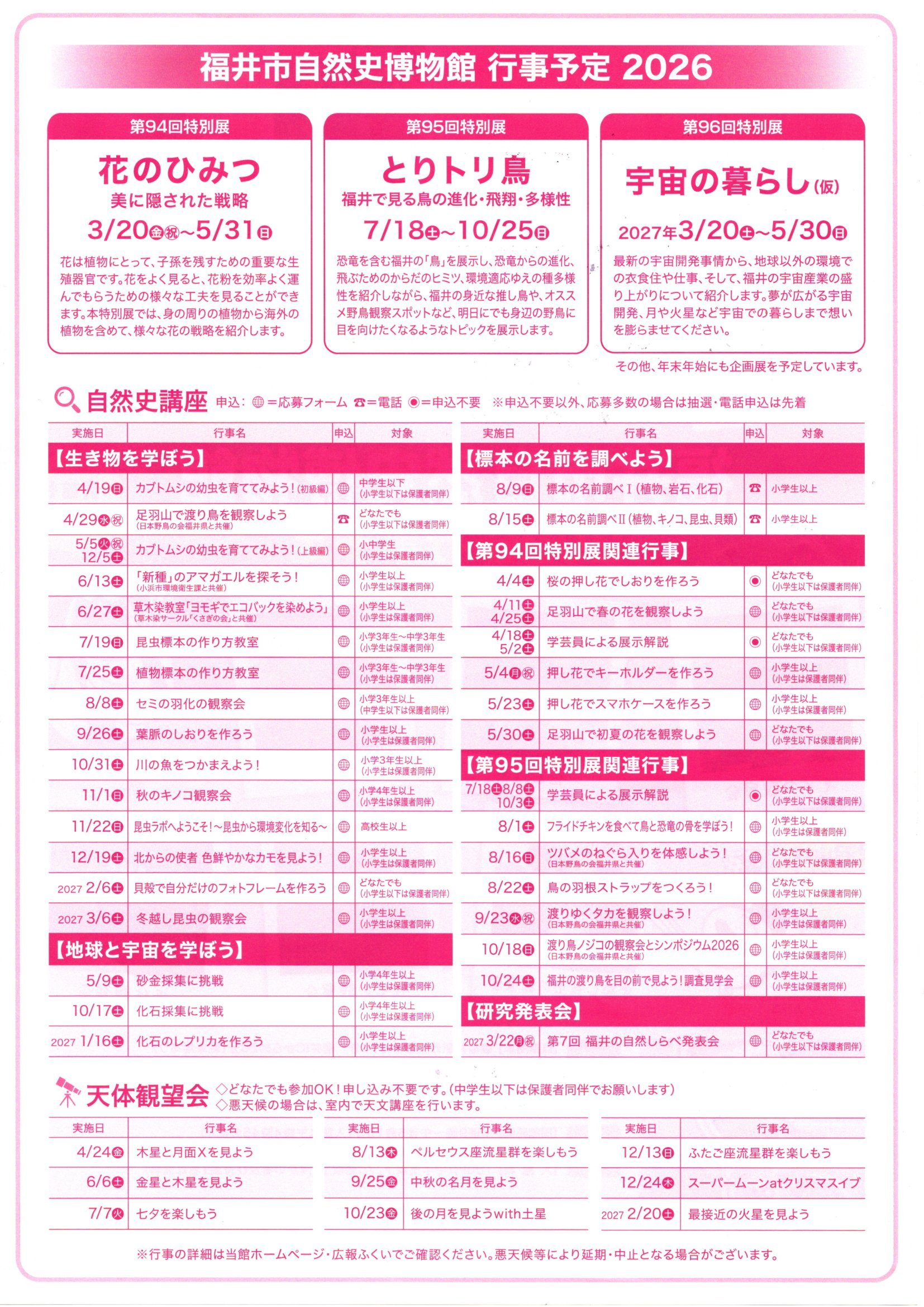 福井市自然史博物館 2026行事予定