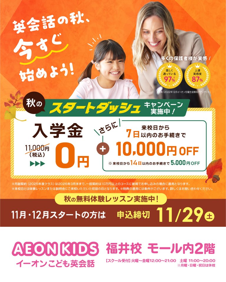 秋の無料体験レッスン実施中!11月・12月スタートの方は、キャンペーン締切11/29(土)