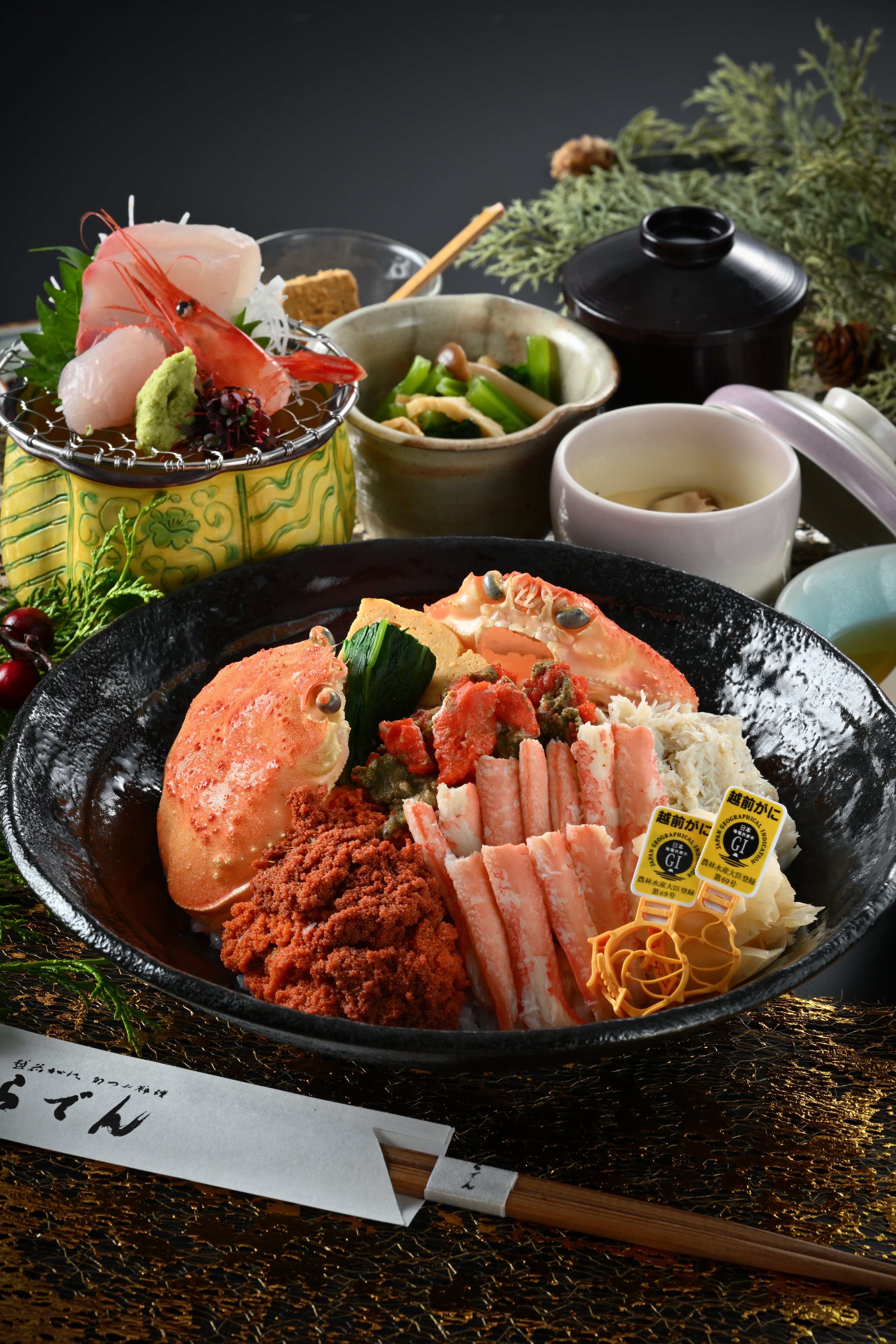 ・先付け・魚のお造り ・温物 ・せいこ蟹甲羅盛り・らでんの一品・茹でがに(お二人で1杯) ・釜炊き蟹ご飯 ・季節のデザート